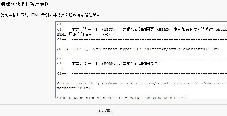在你注册Salesforce帐户后,你的帐户里包含了一个潜在客户的应用。其可以让你设计一个联系表单。而且会给出一个HTML代码,几乎可以应用到任何站点,当然wordpress系统也不例外。