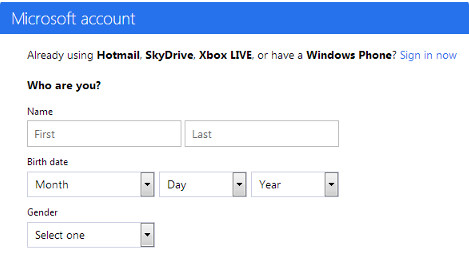 如果你希望使用微软存在的帐户,那么需要你登录。如果你创建一个新的帐户,则需要填写相关表单。