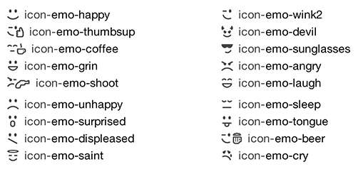 从上图可以看出,使用基于字体的表情符总是适合字体,也不会使得行突出。下面是一些基于字体的表情符说明: